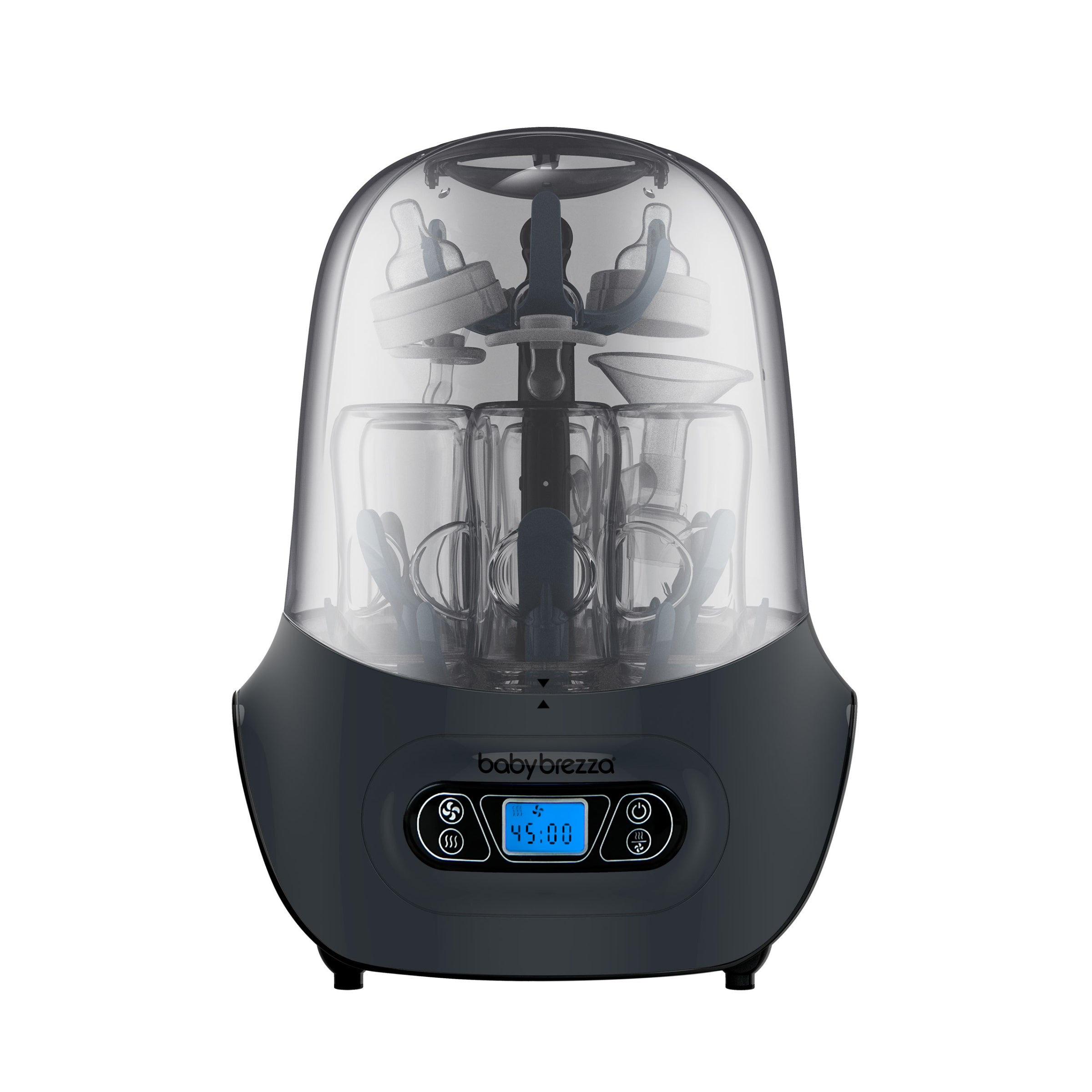 • 4-in-1 functionality and 3 drying cycles – Use LCD control panel to select from 4 functions: sterilize & dry. sterilize only. dry only. or storage rack; and choose from 3 drying cycles: rapid dry (30 min). normal dry (45 min) or extra dry (60 min)
