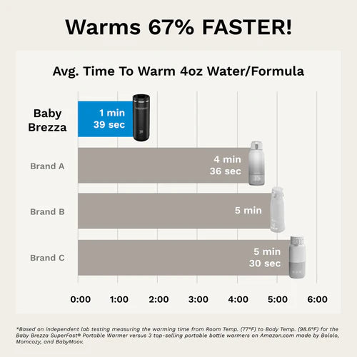 • Clinically Proven to Warm FASTEST: Warms 67% FASTER than other portable warmers due to 67% stronger heater (100 vs 60 watts); Warms 240ml in 3 min. (from room temp to 37°C)